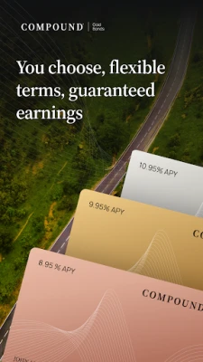 Compound Gold Bonds™️ is a modern fixed-income investment app designed for accredited investors. Earn up to 10.95% APY with daily compounding, backed by real gold and protected with first-loss coverage. Invest securely, track performance, and grow your wealth—all in one place.