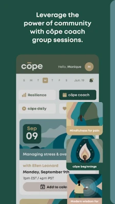 Build resilience and navigate life’s challenges with cōpe, your personal guide to a stronger, more adaptable you. Whether you're managing daily stress, chronic illness, working on your mental health, or life’s toughest moments, cōpe provides live coaching, expert-led classes, and biometrics to help you grow and thrive. Empower yourself with the support and strategies you need to face anything that comes your way.