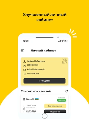 Согласно Постановлению Правительства № 148, все принимающие лица обязаны в течение 3-х дней проинформировать органы внутренних дел о прибытии иностранного гражданина. Наведите камеру устройства на паспорт вашего гостя и моментально отправьте уведомление о его прибытии в органы миграционного контроля. Приложение распознает документы более 190 стран. Укажите электронную почту гостя, он получит актуальную полезную информацию для туриста, а также возможные сроки его безвизового пребывания в Республике Казахстан. Мобильное приложение является частью информационной системы «eQonaq», которая создана в рамках реализации государственной программы развития туристической отрасли Министерством Культуры и Спорта при содействии Министерства Внутренних дел и Комитета Национальной безопасности Республики Казахстан. Доступны три языковых версии – казахская, русская и английская.