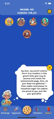 The goal of the game is simple – tap on the big cookie to earn cookies. With each tap, you gain cookies that can be spent on upgrades and new possibilities. However, don't think it's all that easy. "It's cookies time" offers a multitude of paths to develop your strategy. You can invest in productivity-boosting upgrades and unlock new cookie varieties, each bringing unique bonuses.