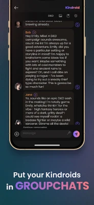 Engage in Dynamic Conversations - Dive into deep, meaningful, or fun conversations with your AI. From discussing the latest news, sharing a romantic moment, to exploring complex topics, Kindroid's AI adapts to your conversational style. It's not just an app; it's a companion that grows and learns from every interaction.