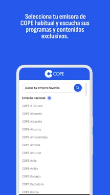 Descubre la nueva app de COPE, la emisora que conecta contigo a través de la información rigurosa, el mejor entretenimiento, el análisis más completo y el deporte en directo y bajo demanda. Con una interfaz sencilla y rápida, lleva en tu móvil los contenidos más seguidos por millones de oyentes.
