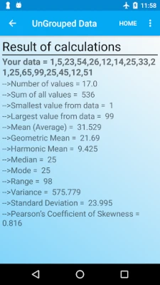 Statistical Analysis:Statistical analyzer performs statistical analysis and show them in form of a list.Statistical analysis can be performed on data by entering the data in the app.Statistical analysis will become easier for you by using statistics app.