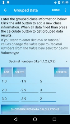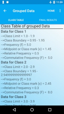 Ungrouped to Grouped data conversion:By using statistics app you can convert ungrouped data into to grouped statistical form and get the class table along with important results like median, skewness, etc using its statistical calculator.Statistical table is generated after converting the raw data. This stats calculator acts as a regression analysis app. Its an amazing statistics table app for math solutions.